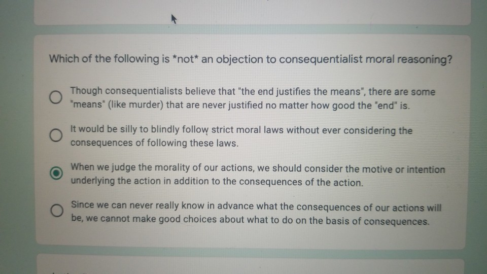 SelfOnly ethical egoism believes this virtuesConsequentialists do not look to virtues to determinemoral action otherOnly altruism believes thisgif altCORRECT consequencesCorrect PointsReceived. What is an importance difference between utilitarianism. Thus from a consequentialist standpoint a morally right act or omission from acting is one that will produce a good outcome.
